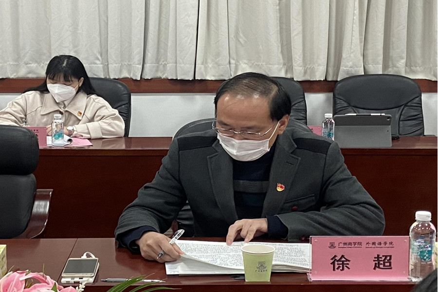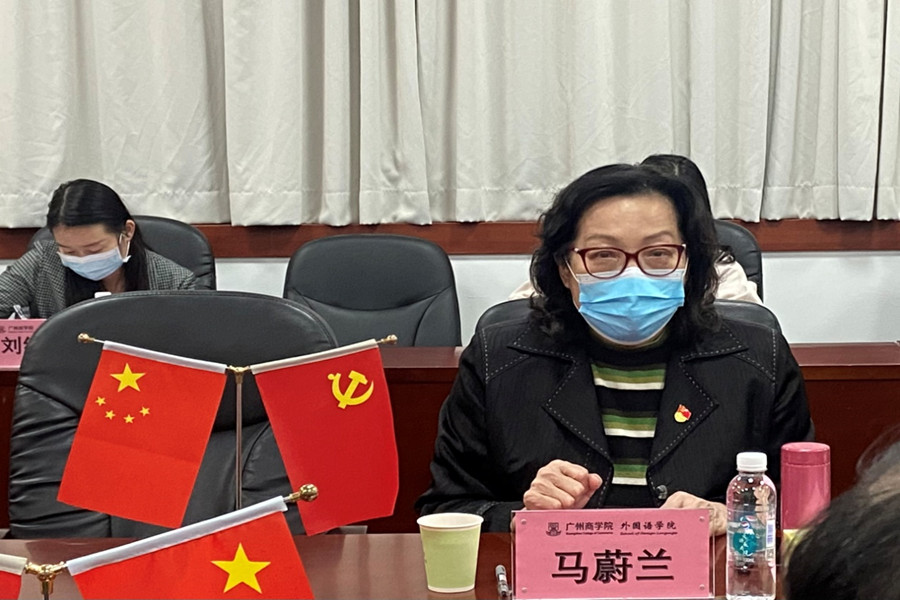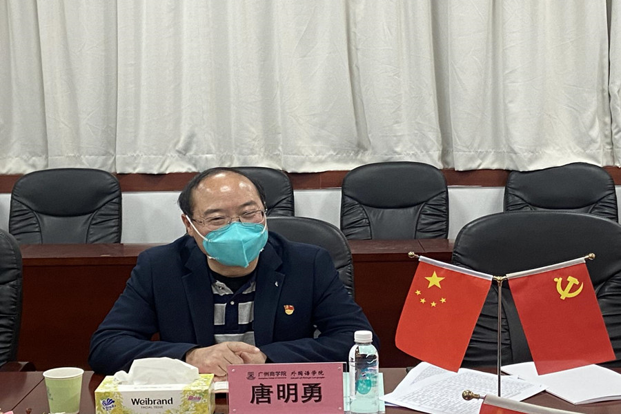 马蔚兰对唐明勇一行的到来表示热烈欢迎,并从课程设置、专业方向、团队队伍、特色亮点等方面介绍了公司基本情况。她指出,公司立足广州、面向广东、辐射全国,着力打造“外语优势,行业特色”的培养特色,在课程思政、学科竞赛、考研升学等卓有成效。徐超从党总支的结构设置、队伍配备、双融双促等方面详细介绍了公司的党建工作情况,并重点介绍了公司教师党员导师制、春华秋实讲坛和22365社会实践体系党建特色品牌。