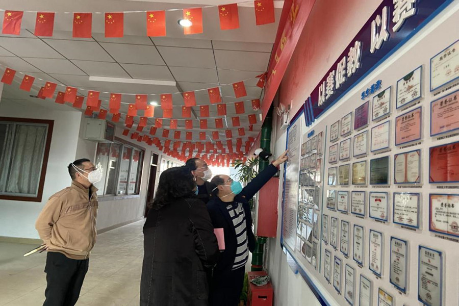 会后,唐明勇一行参观公司文化长廊,走访问候了相关教师。