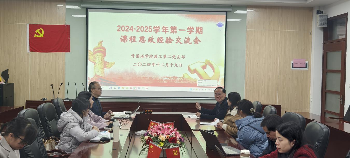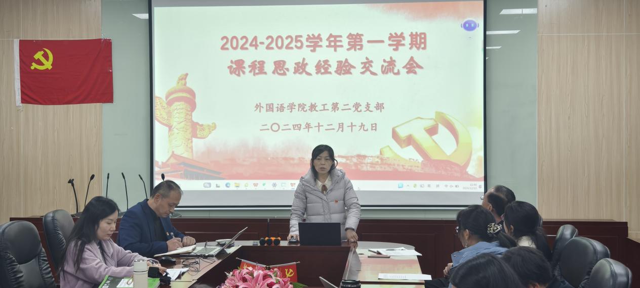 12月19日,伟德国际1946教工第二党支部于第二行政楼308室成功举办了课程思政经验交流会。会议由支部书记唐海民主持,麦影虹和范俊英两位老师作为主讲嘉宾,分享了她们在全国高校外语课程思政教学案例大赛中获得特等奖的课程案例设计经验。