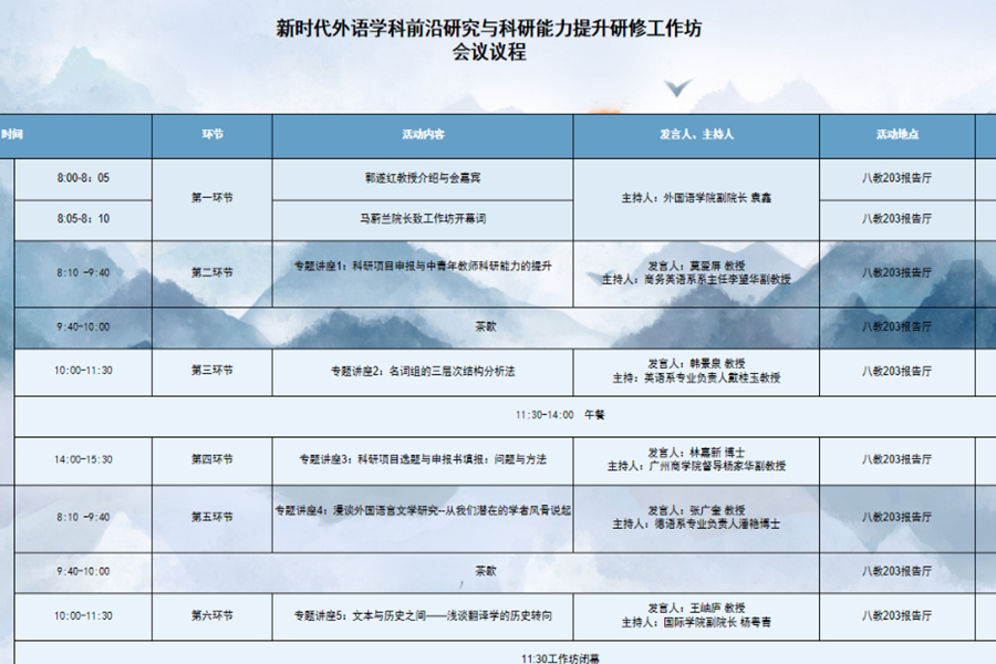 为促进外语学科科研工作纵深发展,提升两院中青年教师科研能力,7月6-7日,伟德国际1946和国际公司联合主办的“新时代外语学科前沿研究与科研能力提升研修工作坊”顺利进行,公司外语学科负责人莫爱屏教授筹划,两院全体专任教师参与。