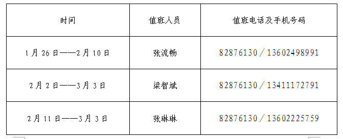 伟德国际19462015年寒假值班安排表