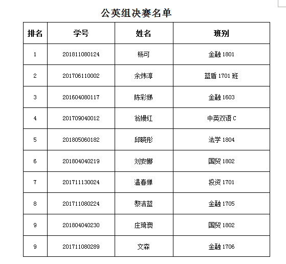 “新干线杯”英语写作技能大赛决赛名单