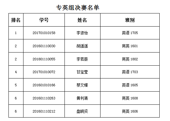英专组1-3名进入第二轮,排名4-7名为决赛三等奖