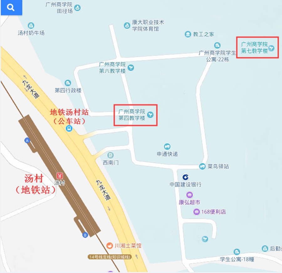 2.也可乘坐广州地铁14号线到汤村站下车。