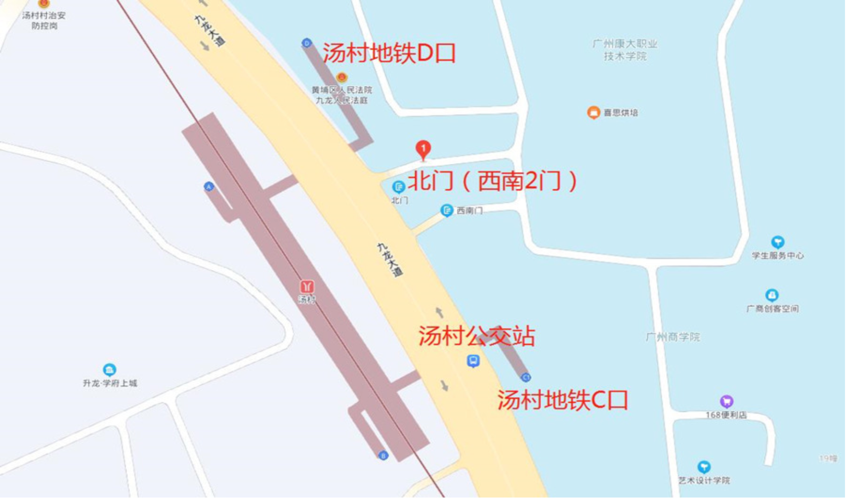 3.本考点位于广州地铁14号线支线汤村站(C或D出口),考生仅允许从北门进入考点,不允许非本校登记车辆进入校园,考生应尽量选择公共交通工具前往考点。陪考人员不得进入公司或在校门口长时间等候。