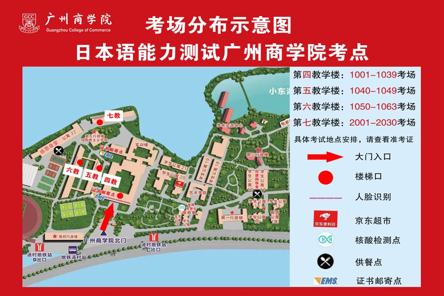 1.N1级别考场:第四教学楼、第五教学楼、第六教学楼
