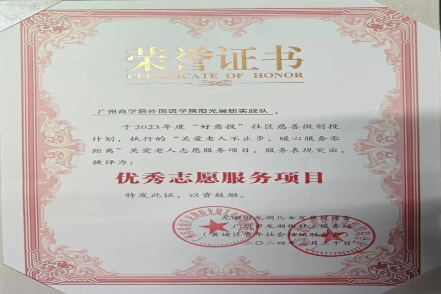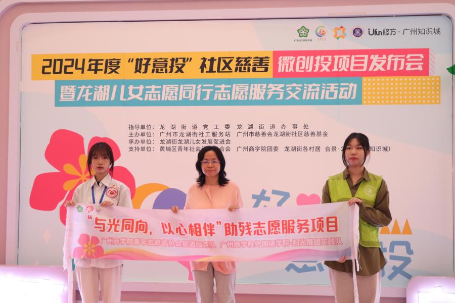 “好意投”社区慈善微创投计划——社区慈善志愿服务项目是由广州市龙湖街社工服务站、龙湖街龙湖儿女发展促进会主办、广州市慈善会龙湖街社区慈善基金支持的志愿服务项目。经过项目自主申报,项目评审,合作公示, 伟德国际1946阳光展翅实践队暖心服务“关爱老人不止步,暖心服务零距离”关爱老人志愿服务项目和“与光同向,以心相伴”助残志愿服务项目获得立项。