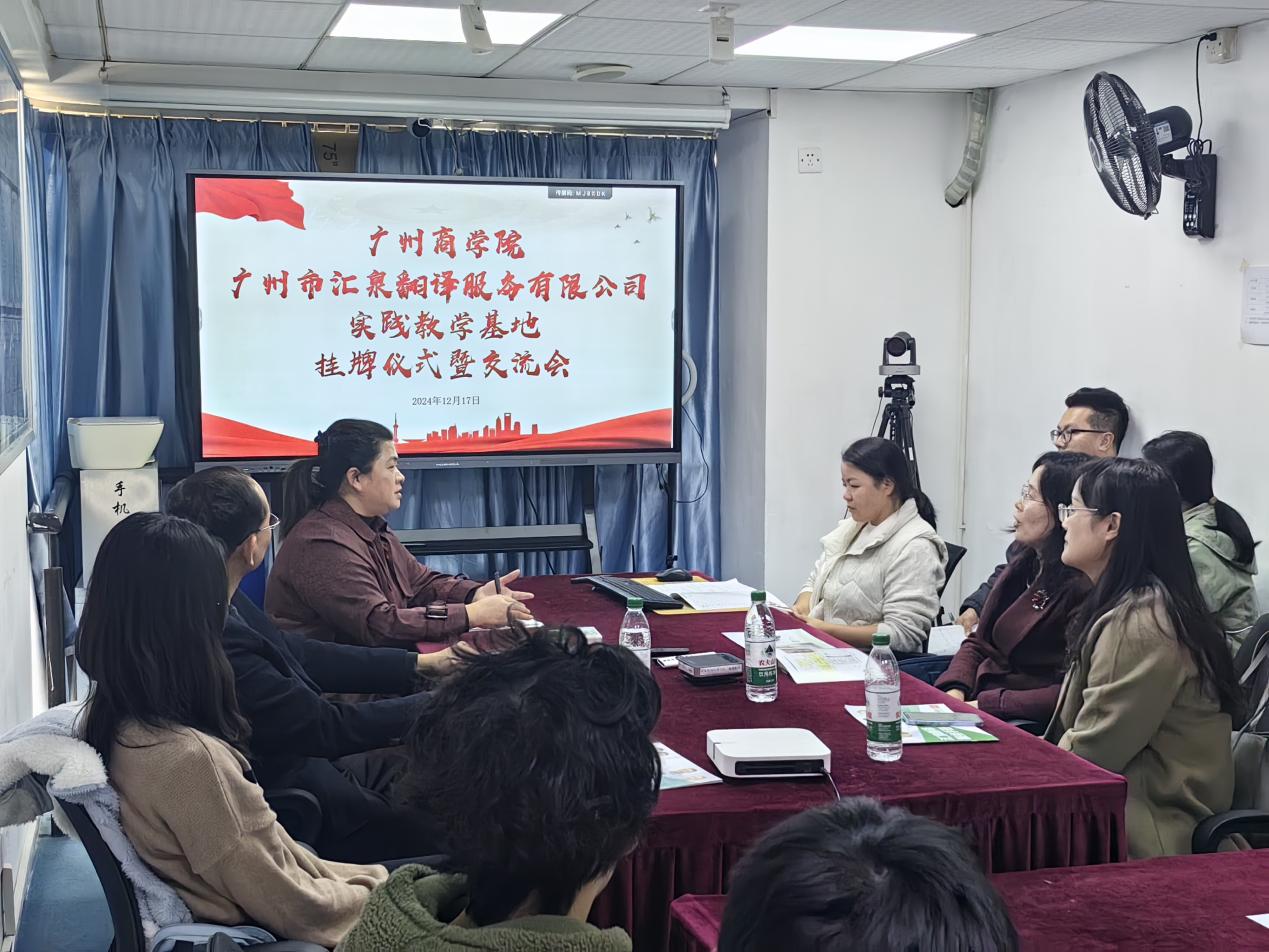 为进一步加强校企合作,促进产学研深度融合,提升外语专业员工的实践能力与就业竞争力,12月17日下午,公司经理郭遂红、党总支书记徐超、经理助理张雅敏及师生代表一行前往广州市汇泉翻译服务有限公司开展交流活动,并举行挂牌仪式。此次活动为公司与企业搭建了沟通的桥梁,开启了双方携手共进,协同育人的新篇章。