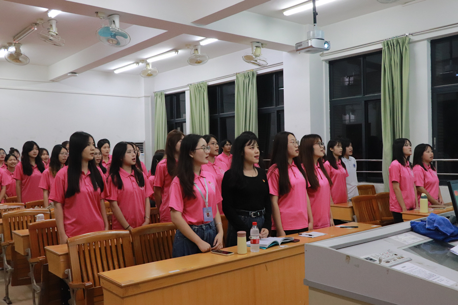 会议伊始,全体成员起立,奏唱团歌。各部门成员依次进行自我介绍及才艺表演,他们用激昂的声音和高涨的热情向大家展示自我,积极联络各部门成员之间的感情。