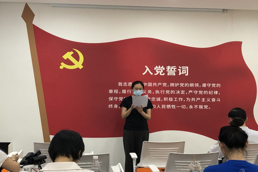 按照预备党员转正的组织发展程序,预备党员薛俊洁同志宣读转正申请书,汇报考察期内的个人思想、工作、学习及生活方面的情况。入党介绍人和与会党员充分讨论薛俊洁同志在考察期的综合表现并表明了态度。最后,经有表决权的正式党员无记名投票认为,薛俊洁同志已经具备一名合格党员的政治素养和条件,同意其按期转正,并形成决议报上级党委审批。会后,新党员和全体支部党员在公司党总支书记徐超的带领下,面对党旗庄严宣誓。