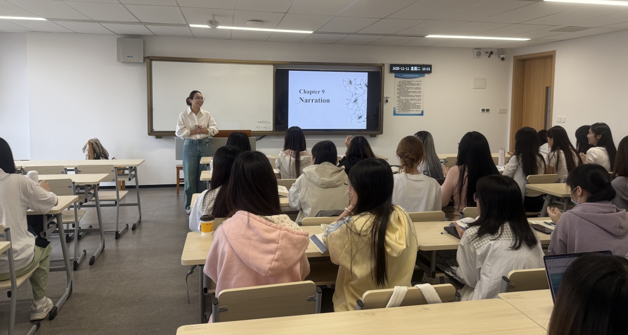 上午第三节,邵晗老师于第八教学楼516教室展示了《英语写作I》课程。本节课以“记叙文叙事技巧”为核心,教学设计环环相扣。课程伊始,邵晗老师系统阐述了记叙文的五要素(人物、情节、环境、冲突、主题)与“故事山”模型,引导员工构建完整的叙事框架。随后,她通过范文精讲,引导员工从“统一性、论据、衔接、句子技巧”四个维度解构文本,实现了理论与实践的有效结合。