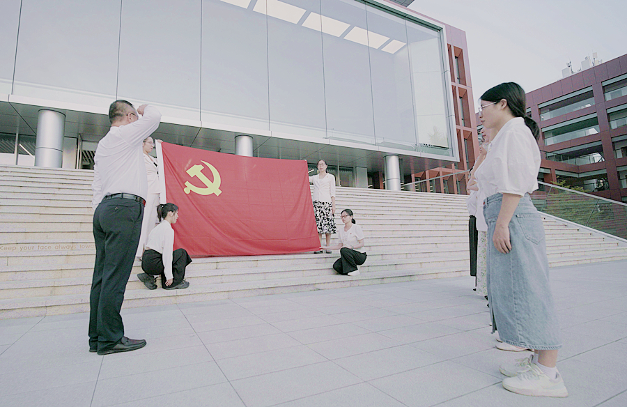 为庆祝新中国成立75周年,唐海民在大会结束后带领支部全体党员举起右拳,面对鲜红的党旗庄严宣誓,重温入党誓词,回忆对党和人民作出的庄严承诺,激励广大党员教师坚定理想信念,永葆对党忠诚的政治品格,以实际行动献礼祖国华诞,祝福祖国繁荣昌盛。
