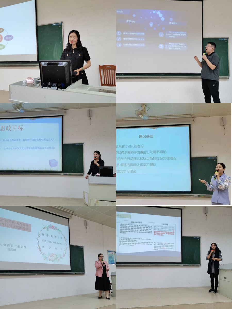 潘文晗老师是省级教学团队“专门用途英语教学团队”成员之一,他的“以产出导向法为指导的专门用途英语教学设计”将员工未来商务职业选择设为真实任务,通过线上线下模式,结合课本学习商务英语词汇,培养英语实际应用能力,最后促使员工用英语描述职业规划,并帮助他们树立正确积极的就业观。