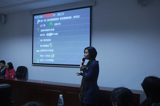 外语系2007届英语专业优秀员工邓媛媛师讲座中