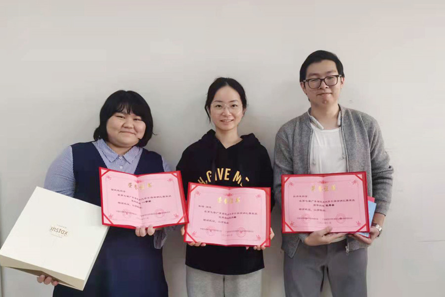 因采取线上比赛的缘故,本次比赛的即兴演讲环节的要求也由往年的拿到题目后进行十分钟的准备再开始作答变为在十秒内开始作答,这要求选手不仅要有较高的语言水平,还要有较强的反应能力。在赛前准备中,李晶老师、彭演老师对员工进行了语音语调、稿件撰写及演讲能力等方面的精心指导。决赛中,胡秋艳同学及吴沛丰同学,以扎实的日语能力为观众带来了精彩的演讲,在与其他12所公司的决赛选手同台竞技中获得了优异的成绩。彭演老师指导的胡秋艳同学获得低年级组一等奖;李晶老师指导的吴沛丰同学获得高年级组优秀奖。