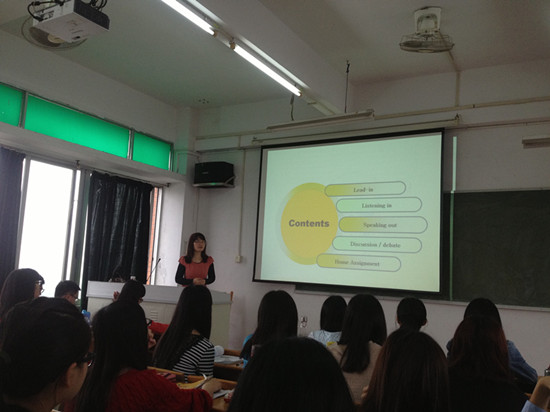 本次大学英语观摩课的授课老师分别是:杨家华、任青老师(英语视听说方向),李卓华老师(商务英语翻译方向)和冯彩云老师(英语时文阅读方向)。根据教研室收集的意见,各模块课都有比较鲜明的课程特色,教师讲课风格适合相应课程,注重实际应用并激发员工学习的兴趣。例如杨家华老师的视听说课堂气氛轻松幽默,用提问员工的方式一步步进入课文主题,很有启发性。任青老师的口语活动与时俱进,学练结合,条理层次分明。李卓华老师的翻译课程内容丰富,理论与实践结合紧密,对员工的商标翻译能力有很显著的提高作用。冯彩云老师的阅读课教授词根词缀,帮助员工扩展词汇量。