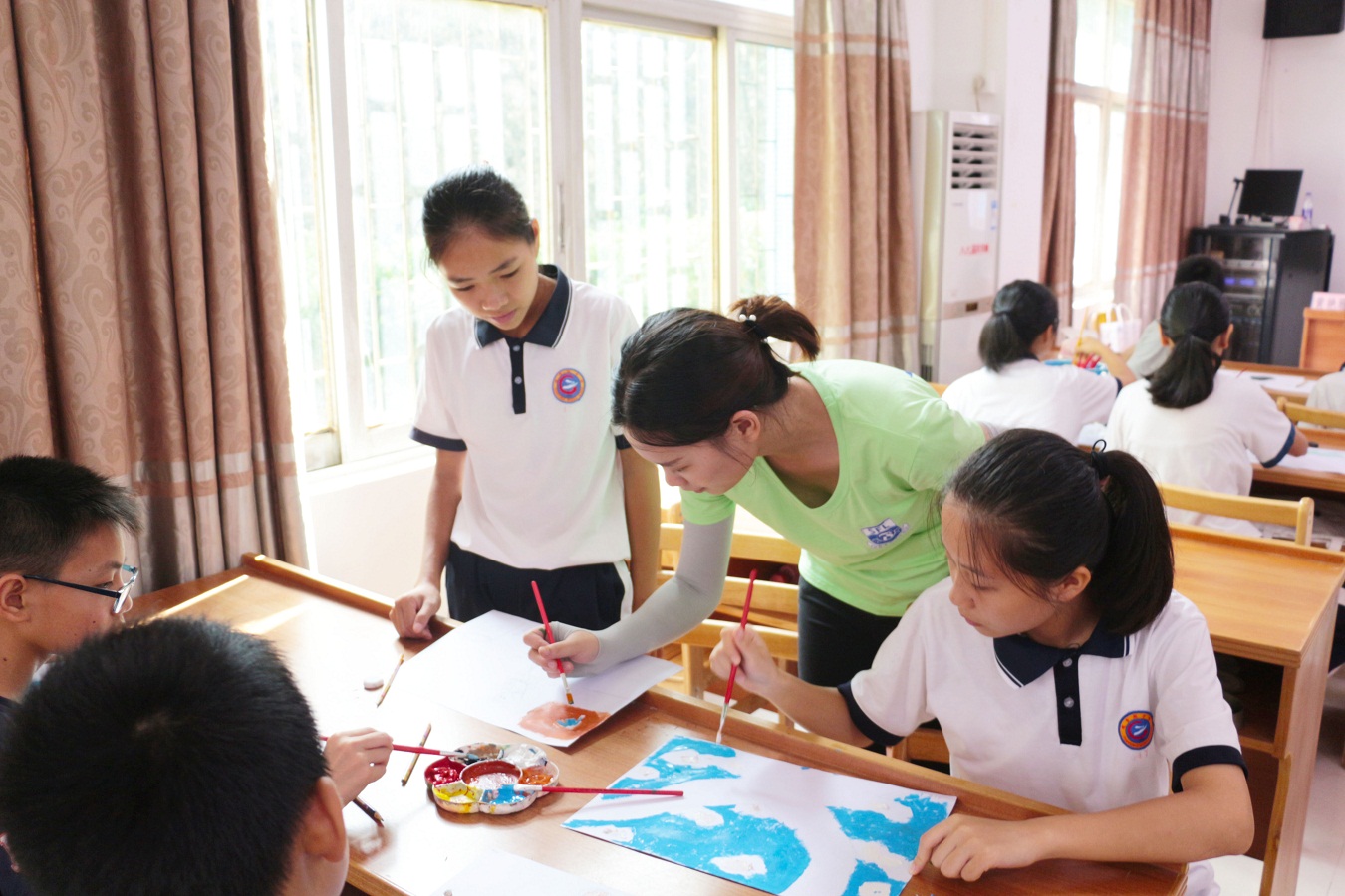 志愿者教授员工绘画知识