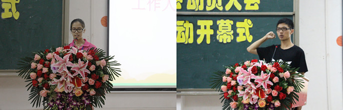 为了确保校运会和“三走”系列活动的顺利进行,外语系员工会工作人员代表梁文君表明决心,努力为同学提供良好的竞技氛围和优质的后勤服务;运动员代表陈衍东同学上台表决心,力争发扬外语学子顽强、拼搏、胜不骄、败不馁的运动精神。