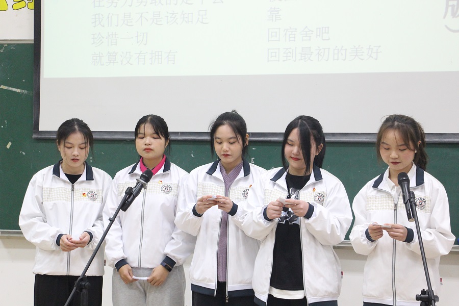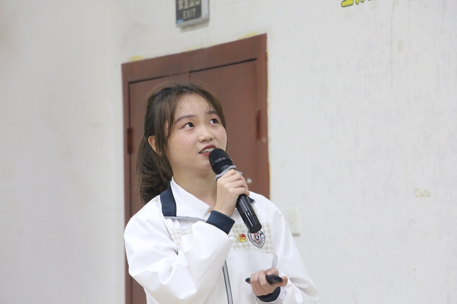 活动在热烈激昂的团歌中拉开帷幕。团委实践部副部长黄颖茵从活动目的、活动筹备、活动成果和反思展望四个方面为我们详解介绍了此次活动。通过她的介绍,让我们进一步了解此次宿舍文明公约大赛活动的内容和开展形式,并引发同学们对脱颖而出的优秀宿舍文明公约的期待。