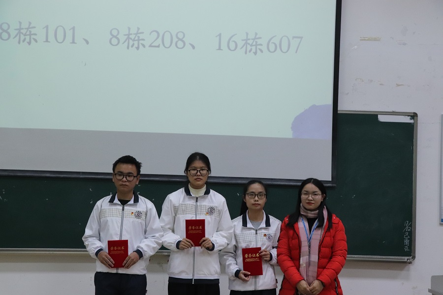 由团委副书记姚焕雯宣读《关于共青团伟德国际1946委员会表彰2020年宿舍文明公约大赛获奖宿舍的表彰决定》。徐超书记、赖雯慧老师、樊丽梅老师和姚焕雯副书记对获奖宿舍代表进行颁奖。