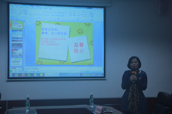 邓媛媛就“大学该怎么过”这一主题从“学习、生活、职业规划”三方面展开讲座,与同学们分享了自己大学人生。她认为大学只是另外一场旅途的起点,同学们要先为自己找一个目标。在学习上,她鼓励学会安排时间,培养学习兴趣,学会自学;在生活上,她鼓励同学们应形成独立的人格,不过分依赖他人,尝试着思考自我;在职业规划上,她提醒学们别总想复制别人的成功,要做一个不一样的自己。此外她还以“成长曲线原则”引导同学们努力做一个“自觉自省、自律自强、懂得自我认同”的老员工,拒绝做一个“自怨自艾、自暴自弃、自我否定”的老员工。在四年老员工活中做好职业规划的行动方案,在奋斗的路上学会舍弃小欲望,成就大梦想。
