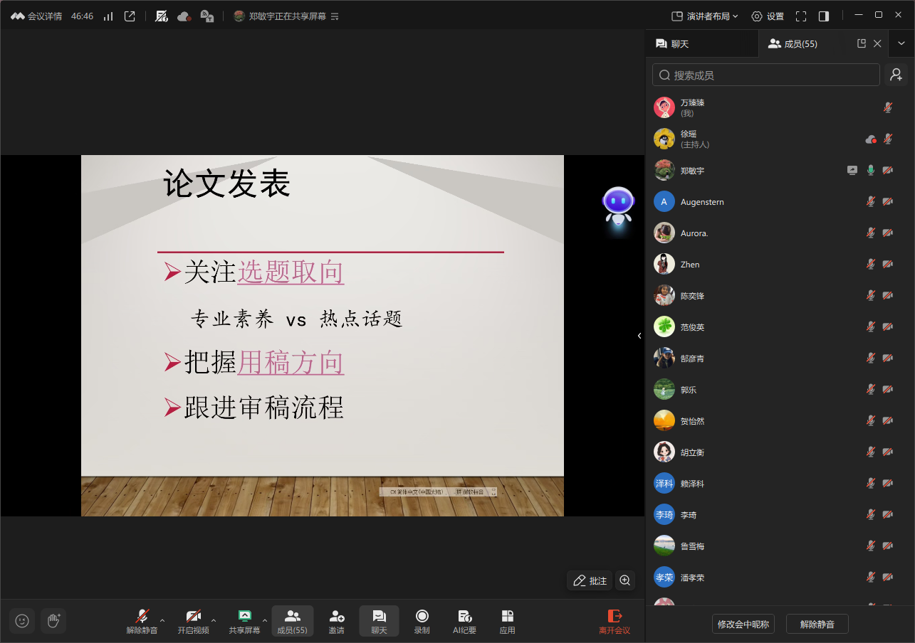 为帮助全院师生精准把握学术论文写作与发表要点,提升科研成果转化能力,1月8日,伟德国际1946成功举办“学术论文写作与发表”的线上专题讲座。本次讲座特邀期刊《外国语》编审郑敏宇教授主讲,伟德国际1946经理助理张雅敏老师主持,全公司专任教师共50余位老师参加讲座。