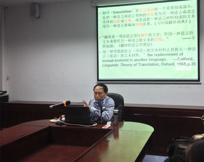 12月3日下午,外语系伍小龙教授在D308作了一场题为“译学研究路向导引”的讲座,外语系副主任袁鑫及其他外语系部分教师参加了此次讲座。