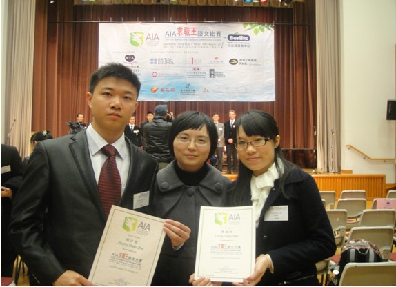 2月26日,第十一届AIA[求职王]语文比赛(粤港澳赛区)在香港跑马地礼顿山社区会堂举行。来自香港、澳门、广东等地的二十名老员工选手参加了比赛,其中广东两所公司参赛。公司外语系通过层层选拔,确定由09级涉外翻译方向的张少哲同学、10级涉外翻译方向的梁超帆同学参加比赛。张蕾老师担任指导老师。