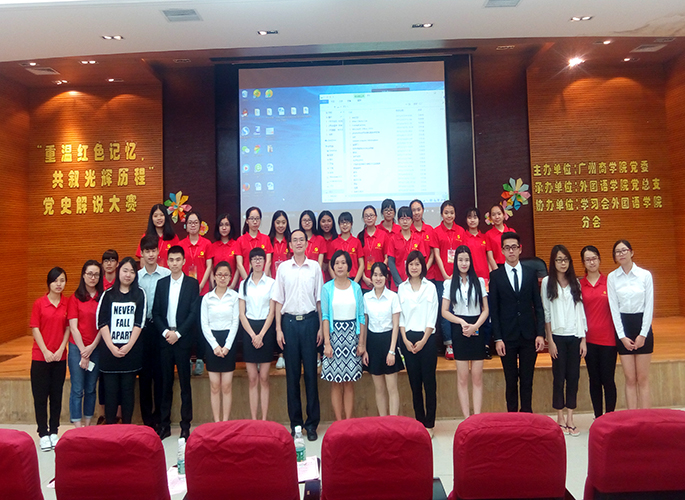 晚上19时30分,党史解说大赛决赛拉开帷幕。六名选手以慷慨激昂的态度和饱满的热情依次对“七七事变”; 新民主主义革命;社会主义建设道路初步探索的意义和经验教训;文化大革命;十一届三中全会后社会主义发展新时期;改革开放与现代化建设新阶段等六段的历史进行了图文并茂的解说。最终经过激烈角逐三号选手黄炜成荣获第一名,四号选手黎淑仪位居第二名,六号选手李丽苹获得第三名,