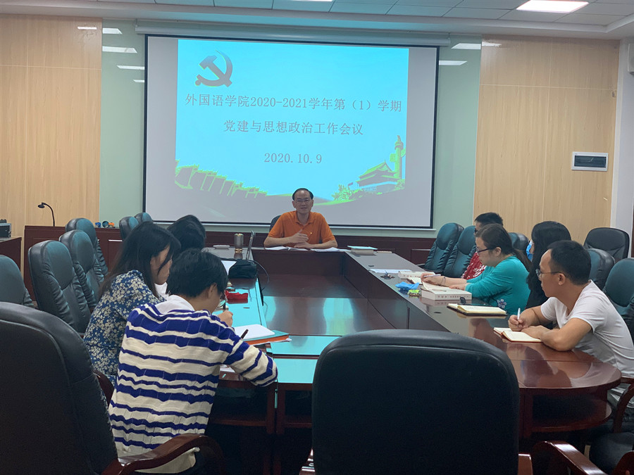 10月9日下午,公司党总支在第二行政楼308会议室召开2020-2021学年第(1)学期党建与思想政治工作会议,集中学习了《习近平谈治国理政》第三卷这本重要著作,明确了接下来公司党建工作重点及日常员工管理工作计划。公司各党支部书记、全体辅导员参加会议,会议由公司党总支书记徐超主持。