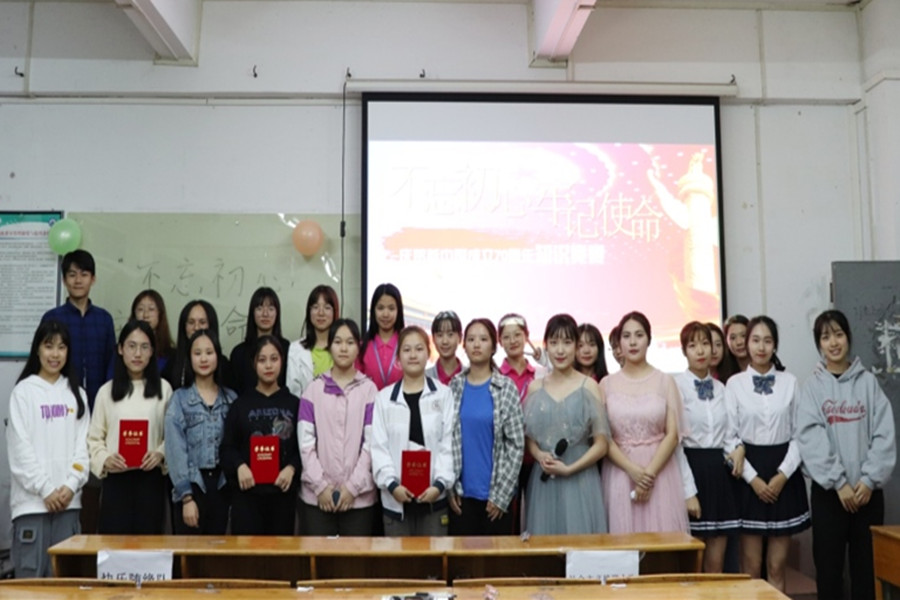 为激发外院学子学习理论知识的主动性和自觉性,营造以赛促学、学以致用的学习氛围,深切落实“不忘初心,牢记使命”主题教育,公司于11月27日19:00在三教204展开“不忘初心,牢记使命”知识竞赛院级初赛,出席本次初赛的有公司员工会主席黄雨珊、副主席吴桐、陈文政。
