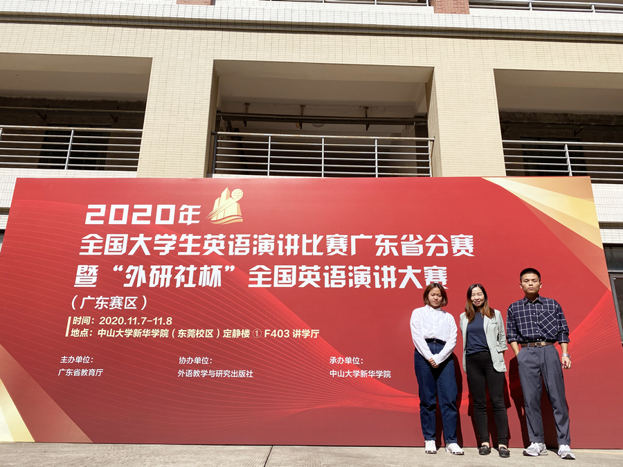 近日,2020年“外研社·国才杯”全国英语写作、阅读、演讲三大赛广东赛区决赛在中山大学新华公司圆满落幕。在领队和指导老师李卓华、指导老师邵春发和陈慧的带领下,公司共有9名优秀员工选手一同前往参赛。最终,根据大赛组织公布的比赛结果,公司商英1803班的刘思源同学获得了“外研社· 国才杯”全国英语演讲大赛和写作大赛广东赛区的双料三等奖,为公司争得了荣誉。