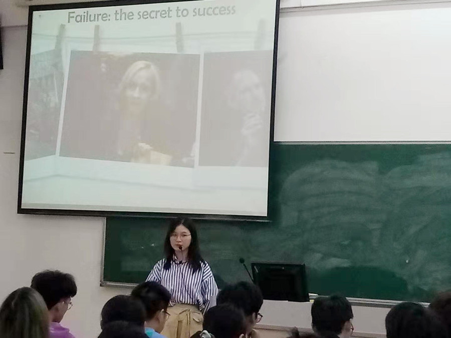 本次研讨课主讲为丁越老师,选用教材《新一代大学英语》基础篇1“综合教程”第六单元I-explore 1“Failure: the secret to success”。丁老师由失败与成功的关系讨论引入课文篇章分析。丁老师打破通常的逐句讲解单词和长难句的方法,首先通过分析文章结构和每个章节的大意,找到课文主题的核心词“process”,并围绕核心词对文章中的案例进行重新分析,通过重组著名人物由失败转成功的过程,总结了他们成功的“secret”,并把课本原有的用于导入的J. K. Rollings故事的视频作为正文的信息不足的补充,既强化员工获取信息的能力,也锻炼了听力能力。