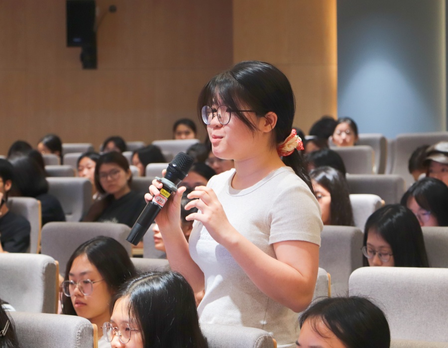 互动问答环节中,员工围绕“中国文化专有名词翻译”“阅读速度与效率如何同时提高”等问题踊跃提问,潘文晗和李静莹结合英语学习的实践经验,建议员工采用加强双语新闻的阅读,积累与中国文化相关的词汇等学习方法。本次活动,近200名员工到场参与现场交流氛围热烈,互动效果良好。