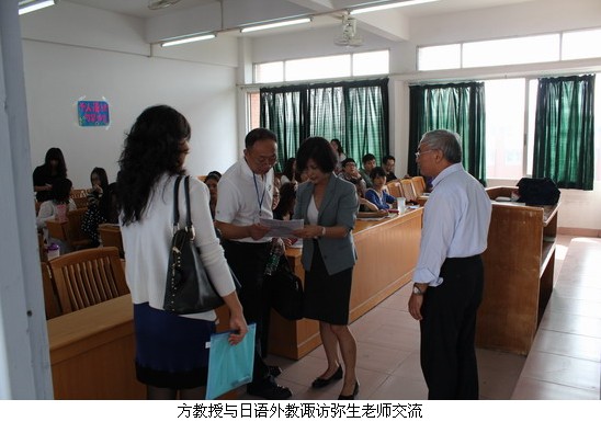 此外,方开瑞教授再次深入到课堂第一线了解教学情况,并与老师同学进行了亲切的交流。方教授分别听了外语系刘精香、诹访弥生老师的课,期间他与日籍教师诹访弥生用第二语言法语进行了亲切交流,气氛融洽。方教授在课后接受员工记者的采访时,对外语系的教学设备建设情况及课堂教学效果给予了高度评价,认为“效果非常好!”他从三方面做了简要评价:第一,教师课程设计完满,授课方式新颖有趣,所授内容符合员工兴趣;第二,员工反应良好,能够与老师互动,课堂气氛活跃;第三,所选教材够切实符合员工水平。