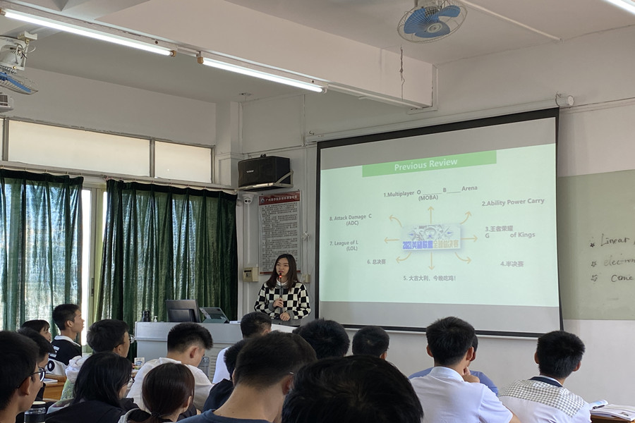 本场研讨课为2021级智能专业的“大学英语I”课程,主讲老师为刘琼雨老师,主题为“Should I Let My Son Play Computer Games?”。刘老师先是结合刚刚结束的EDG电竞游戏夺冠的新闻与上节课的内容回顾电竞相关单词,接着以问题导入课文讲解,分析文章的总体架构,通过提供句型的方式,引导员工在回答问题过程中操练语言。在把握文章整体结构和脉络后,刘老师带领员工分析文章体裁并复习了问题解决型说明文的结构知识。第三步,刘老师课文重要单词进行了重点讲解,以点带面,补充相关词汇。这堂课以员工讨论“老员工该如何看待电脑游戏?”收尾,引导员工思考身边问题,提升认知水平。刘老师中英双语教学,贴合员工的英语水平,用现实案例激发员工的学习兴趣,课件制作图文并茂,善于利用信息化手段辅助教学。