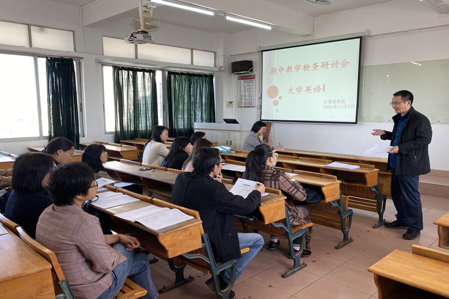 11月8日下午第六节课,伟德国际1946于三教605课室开展本学期第二场大学英语期中教学研讨课。校教务处董志邦、陈伟涛老师、督导王玉芝、公司副经理袁鑫及部分大学英语教师参加了本次教学观摩及研讨。