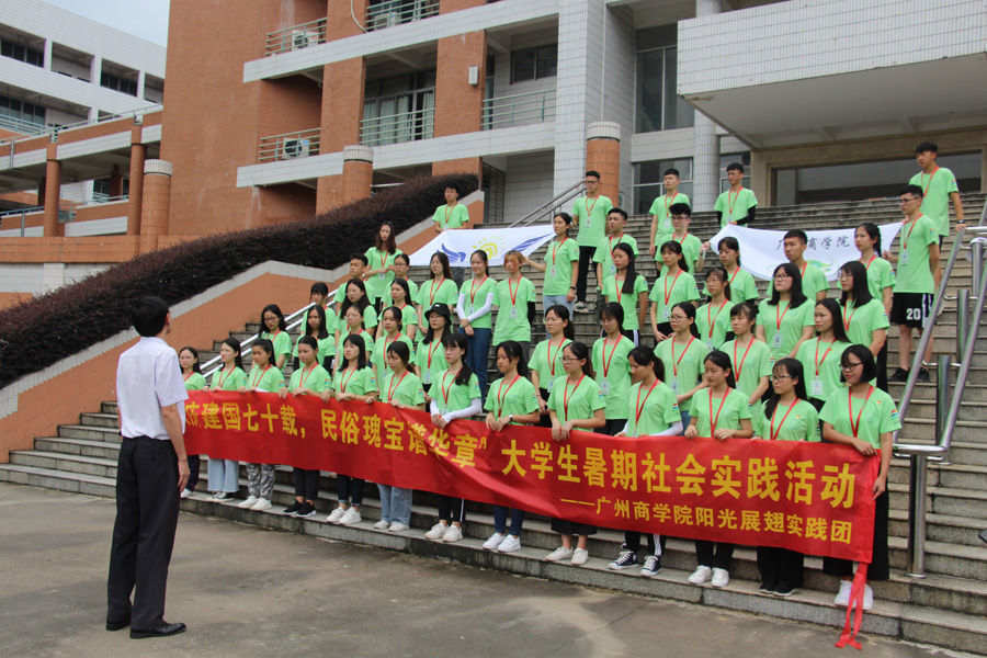 为深入学习贯彻习近平新时代中国特色社会主义思想,学习贯彻党的十九大和十九届二中、三中全会精神,引领教育广大青年员工在切实感受新中国成立70周年取得的巨大成就中增强“四个意识”、坚定“四个自信”、做到“两个维护”,在加强志愿服务中增强责任感和使命感,在社会实践中受教育、长才干、作贡献,以实际行动投身打赢脱贫攻坚战,投身乡村振兴战略实施,勇做担当民族复兴大任的时代新人,公司阳光展翅实践团于 7月9日奔赴清远英德市东华镇文南小学开展为期九天以"欢庆建国七十载,民俗瑰宝谱华章"为主题的老员工暑期社会实践活动。出发前队伍特地举行了出征仪式,公司党总支书记徐超发表了讲话,实践团指导老师刘万里、郑灿玲,辅导员黄玉亭、刘丽萍、戴玮也出席了本次活动。