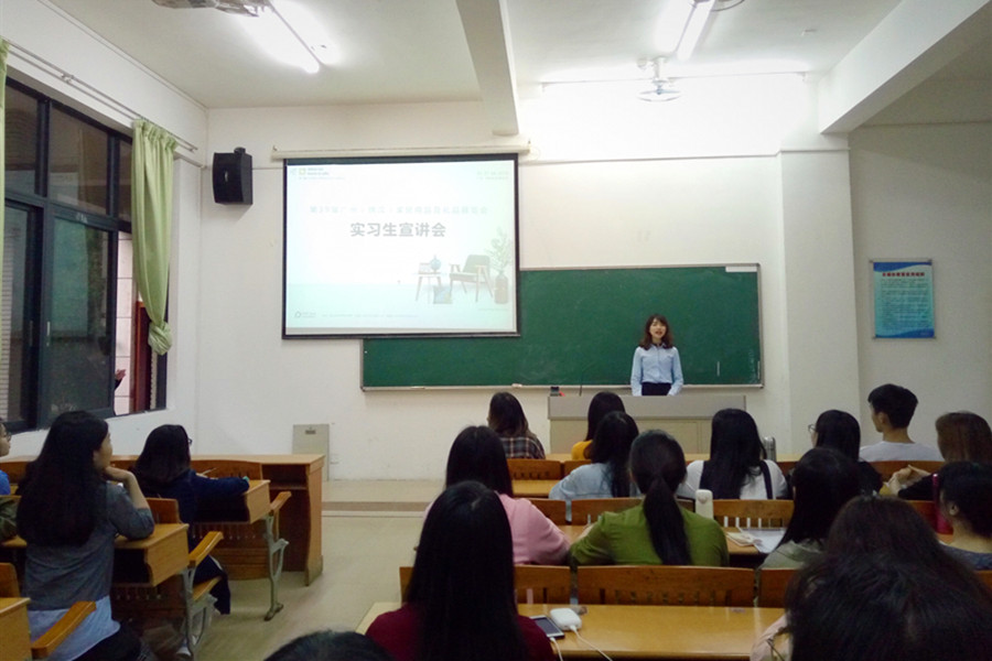 宣讲会邀请了广州市保利锦汉展览有限公司陈卓舒、刘媛以及简镁君等3名负责人到场亲临指导。陈卓舒富有多年主办商贸展会经验,她为在场同学介绍了广州市保利锦汉展览有限关于我们、第39届广州(锦汉)家居用品及礼品展览会筹备情况以及具体岗位工作内容和要求。通过聆听主办方介绍和观看往年展会实习生视频,与会同学大大提升了对于本次实习的兴趣和热情,现场提问气氛热烈、发言踊跃。陈卓舒针对同学们心中的疑惑,耐心地作了解答。
