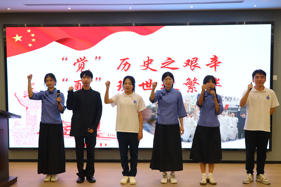 员工第一党支部张嘉豪代表“一心向党队”做题为《觉醒年代燃烽火,使命担当铸辉煌》的汇报,通过对影视作品《觉醒年代》中毛泽东、蔡元培、陈独秀和李大钊的经典人物解析和重要事件概括,生动再现了一百年前中国的先进分子和热血青年为追求真理的澎湃岁月。慷慨激昂的诗朗诵《不朽》,在后人与先辈们之间的对话中,激励在场学员要将个人命运同民族命运结合起来,以坚定的意志奋勇前行,创造不负革命先辈期望、无愧于历史和人民的新业绩。