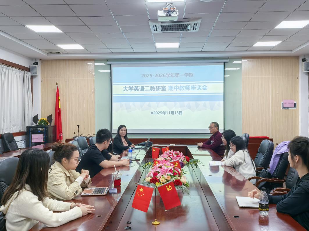 为了提高教学质量,11月13日下午,伟德国际1946大学英语二教研室在第二行政楼308室召开期中教学工作座谈会。