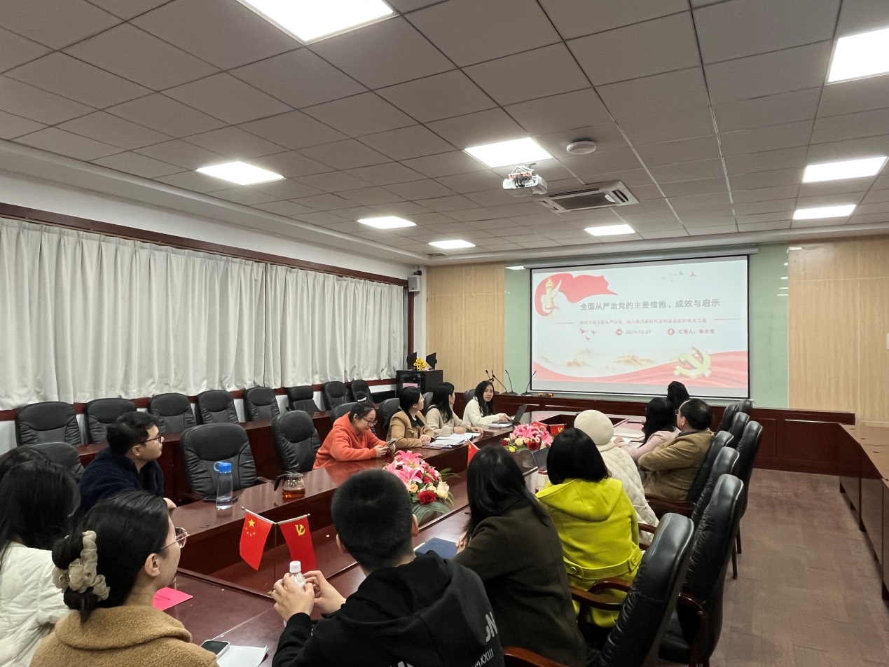 会议严格落实第一议题制度。秦思莹老师分享党的二十大报告第十五部分中全面从严治党的主要措施、成效和启示的重要内容。她指出,全面从严治党是新时代党的建设的鲜明主题,是新时代党的自我革命的伟大实践。通过一系列有力措施,全面从严治党取得了显著成效,为党和国家事业发展提供了坚强保障。秦思莹结合自身生活实践,具体指出了全面从严治党有效解决了党内存在的突出矛盾和问题,消除了党、国家、军队内部存在的严重隐患。同时,全面从严治党也推动了党风政风民风持续好转,为党和国家事业发展营造了良好政治生态。这些启示为我们今后继续推进全面从严治党提供了宝贵经验。在秦思莹分享结束后,与会党员开展了较为深入的讨论。