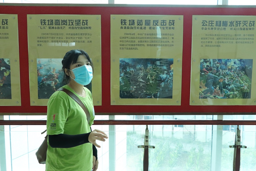 进入惠州市博罗县文化馆,蔡文蝶向成员详细讲解了东江纵队的发展历史,并表示,当下的和平与安定生活是革命先辈们不惜生命换来的,青年一代要积极主动学习党史,以史为鉴,坚定理想信念,做到心中有理想,脚下有目标,将先辈们不懈拼搏的精神发扬光大。