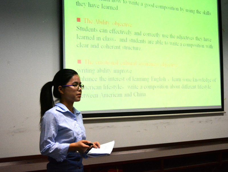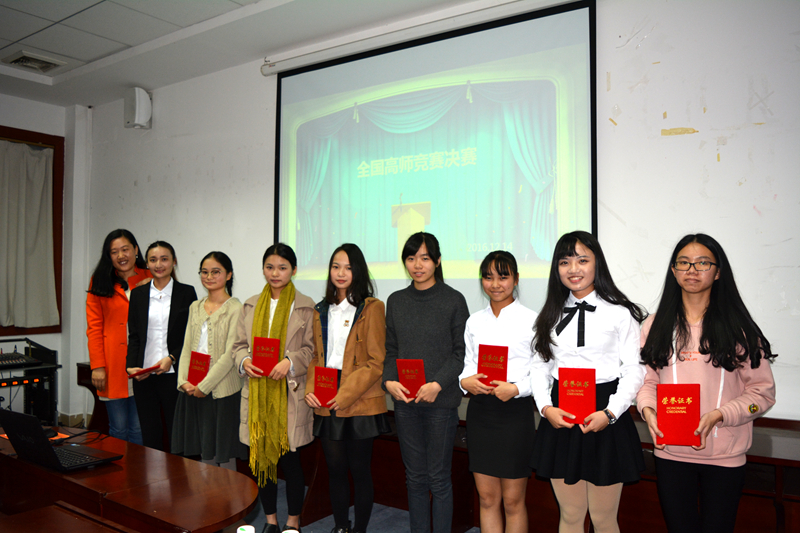 进入决赛的各位选手以制作精美的课件、流利的口语表达、缜密的说课思维获得了评委老师的肯定,同时评委老师也提出了选手们在比赛过程中出现的过于紧张,表情不够自然,课件不够简练等问题,期待选手们在今后通过参加更多的比赛来磨练,为成为一名优秀的英语教师而继续前行。
