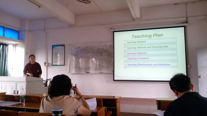 2015年5月14日公司外语系在教学楼B403举办 “第六届‘外教社杯’全国高校外语教学大赛”伟德国际1946初赛暨 “外语系第二届新入职教师说课比赛”,参加本次比赛的评委有外语系主任马蔚兰教授、副主任黄小群教授、袁鑫、外语系校聘副教授程华明、袁楚娜,部分教师全程旁听了比赛。
