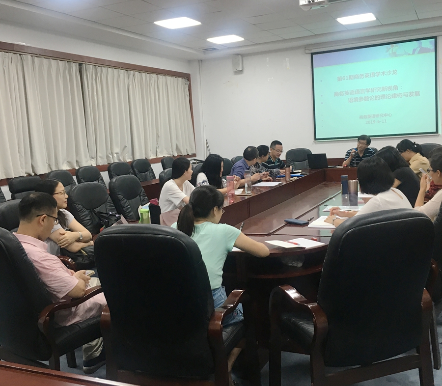 6月18日下午,第61期商务英语学术沙龙在伟德国际1946在第二行政楼308会议室举办。沙龙题目为“商务英语语言学研究新视角:语境参数论的理论建构与发展”。沙龙由商务英语学科带头人曾利沙教授主持,伟德国际1946副经理袁鑫和商务英语系全体教师出席了沙龙研讨。