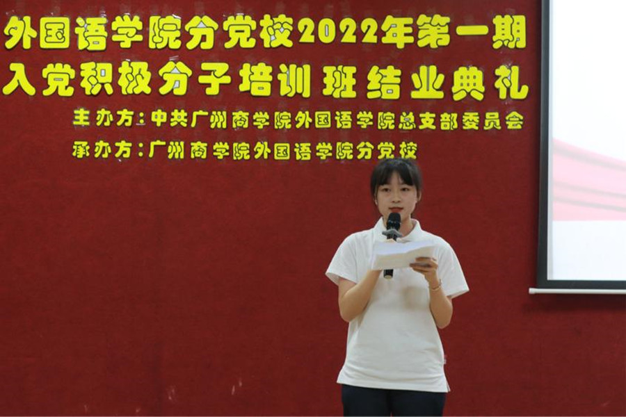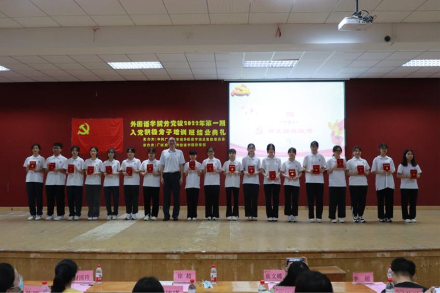 徐超为89位学员颁发结业证书,为优秀学员廖佳琪、毛婧彤等10人颁发荣誉证书并合影留念。廖佳琪同学作为本期入党积极分子培训班优秀学员代表发言。她表示本次入党积极分子培训班的学习,让她进一步了解了党的历史,端正了入党动机,明白了成为合格党员应具备的素质,激励她竭诚为民服务、勇于担当作为,把党章所体现的党员先进性贯彻落实到日常学习生活实践中,以切实的行动积极向党组织靠拢。以后定当以青春之力,助力祖国;以奉献之心,回馈祖国!