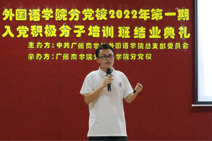 徐超为本次结业典礼致辞。他向顺利结业的学员们表示热烈祝贺,也对各位辛苦授课的老师们以及助理团的各位成员表示由衷的感谢,并向学员们提出四点要求:第一,进一步坚定理想信念,不断提高党性观念。第二,进一步加强理论学习,不断提高党性认识。第三,进一步加强实践锻炼,不断提高党性锻炼。第四,进一步发挥先锋作用,不断提高党性修养。祝愿各位入党积极分子早日成为一名合格的共产党员。