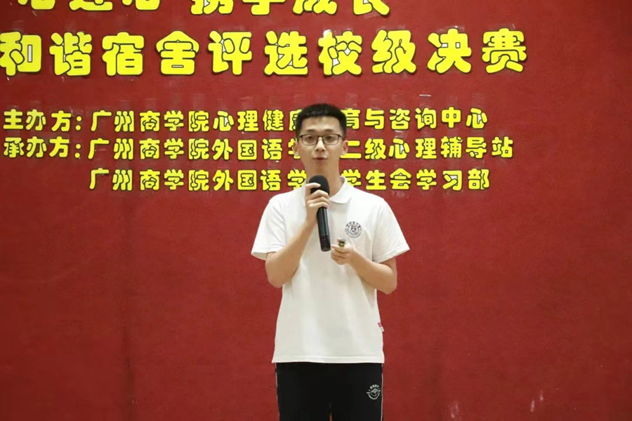 徐超书记对舍友之间的关系展开讲述,指出保持宿舍和谐,“宿舍约章”有着重要作用,并为其提出三点建议:首先,相互尊重,相互理解;其次,团结友爱,共同进步;最后,制定计划,努力上进,为本次比赛拉开序幕。