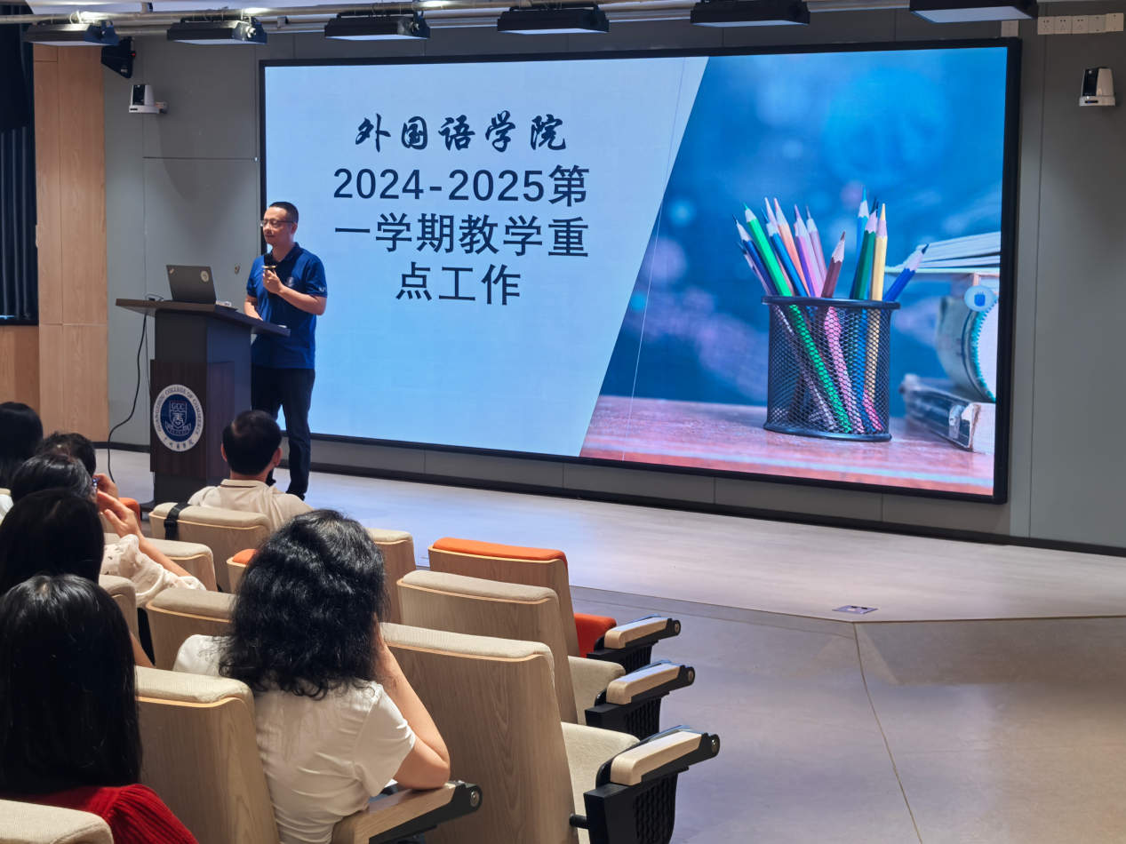 会议伊始,郭经理介绍了本学期加入伟德国际1946的老师,新入职老师一一向全院教师做自我介绍。党总支书记徐超对公司上学期及暑假期间的党建工作、师德师风、就业工作、招生工作等方面进行梳理并对新学期的工作进行部署。教学副经理袁鑫简要讲解了本学期的工作要点,并就“AI时代的外语教育”的主题,通过三篇论文分析了外语专业面临的挑战和出路,鼓励老师们积极拥AI抱智能时代,将技术应用于自己的专业中,以优秀的成果赢得未来的挑战。